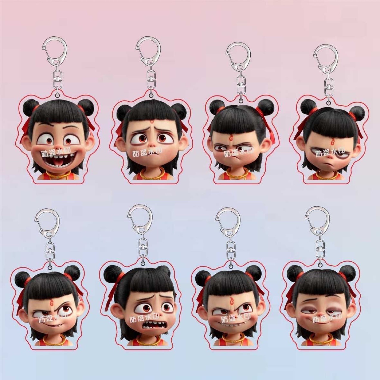 The Nezha 2 keychain is made of high-quality zinc alloy, which is hard in texture and the electroplating process keeps it brand new; the lanyard is a durable nylon rope with a reinforced knot that is not easy to fall off.